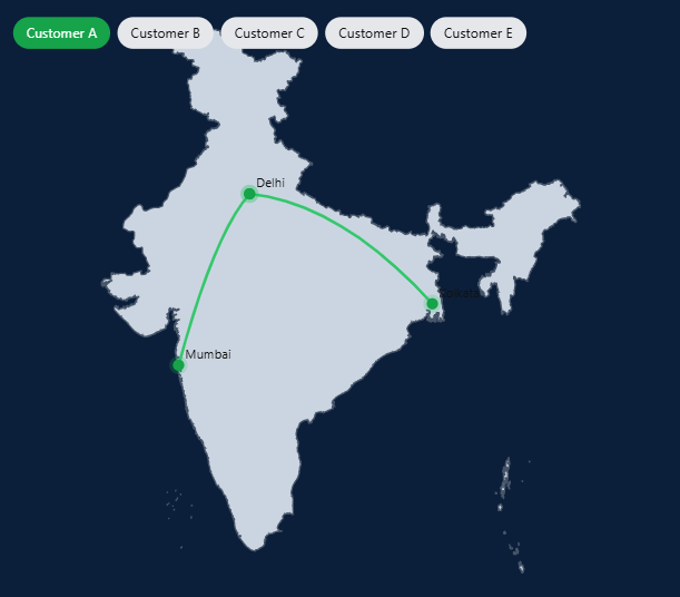A directional flow visual that tracks movement of data, processes, or transactions across nodes. Ideal for process analysis, supply chain tracking, or system architecture mapping.