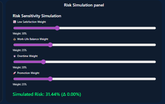 An interactive simulation tool that allows users to test different scenarios and instantly see the impact on key risk metricsâsupporting data-driven decision making.